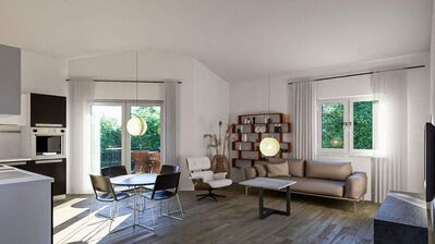 Preis der Wohnung 332.000 Euro ; 84,5 Qm incl. 175 qm Gartenanteil